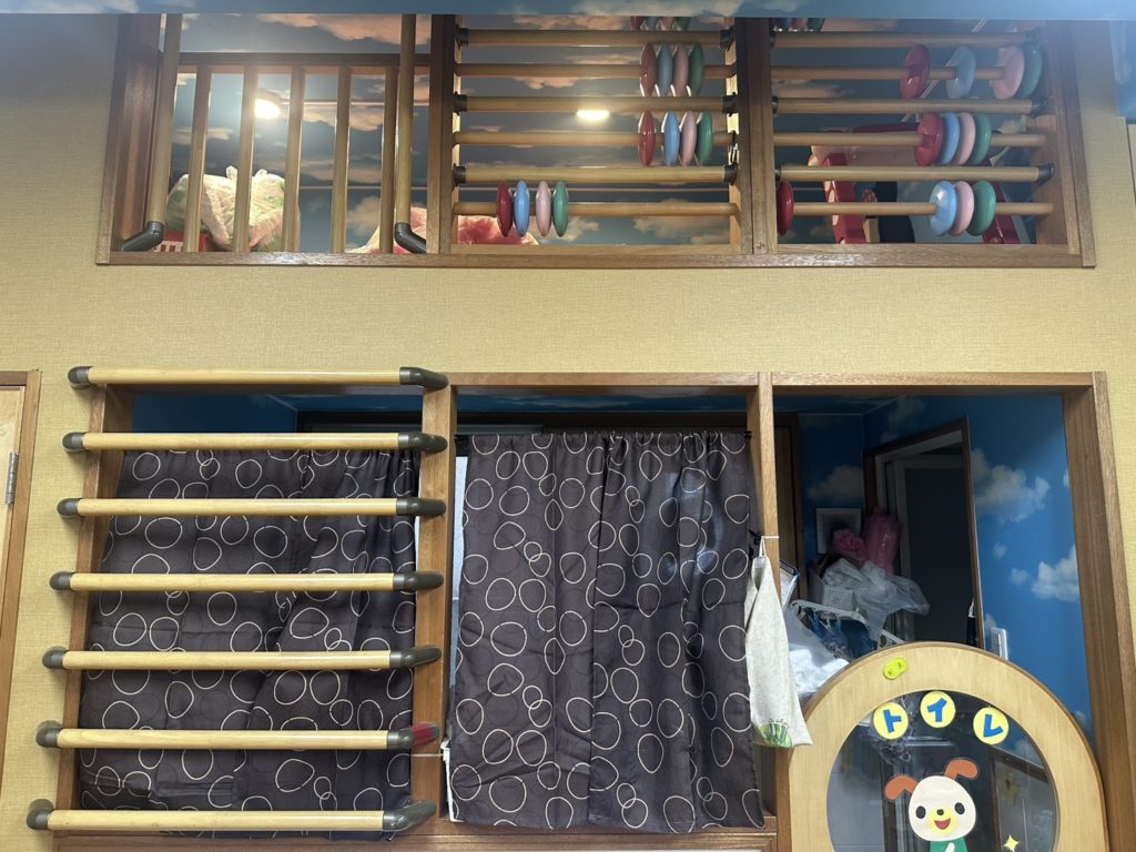 保育室の一角には、子どもたちが心おちつけて過ごせるロフトスペースを設けています。