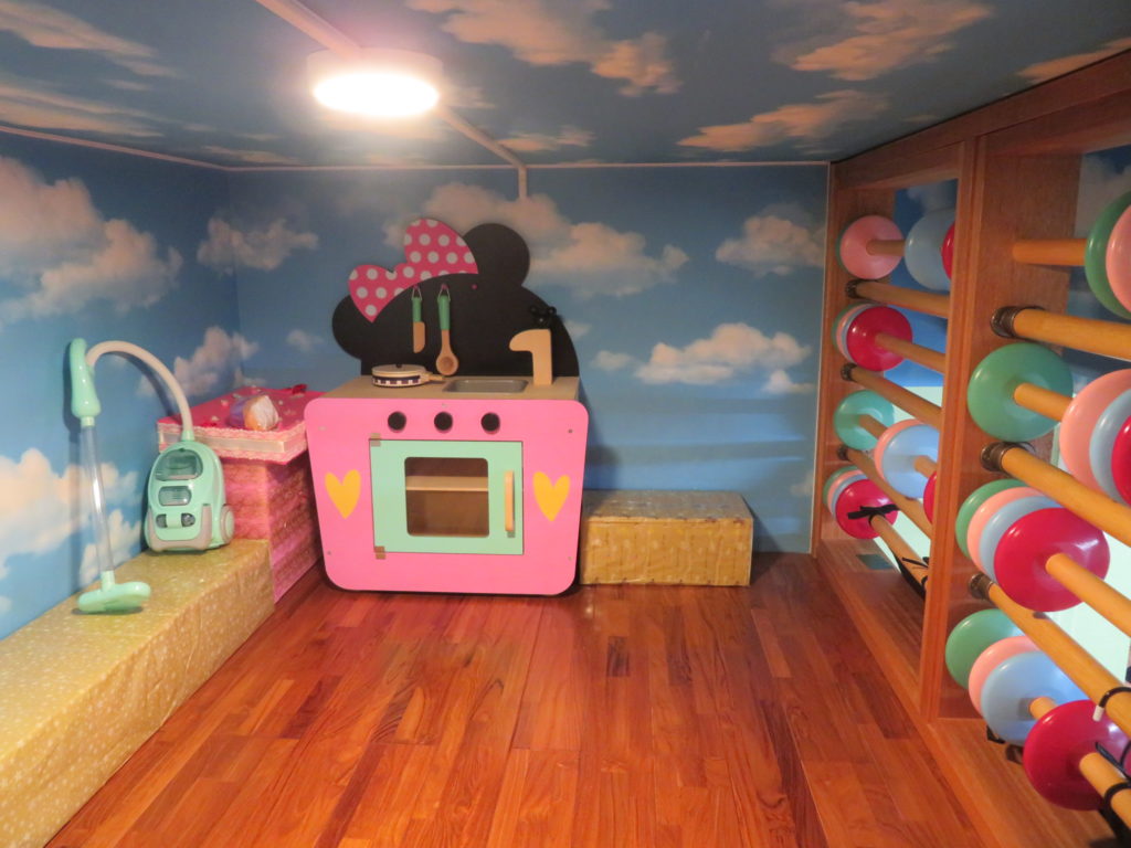 はしごをのぼって絵本を読んだり、友だちと小さな声でおしゃべりをしたりと、自分だけの時間を楽しめる子どもたちの「秘密基地」のような空間です。
